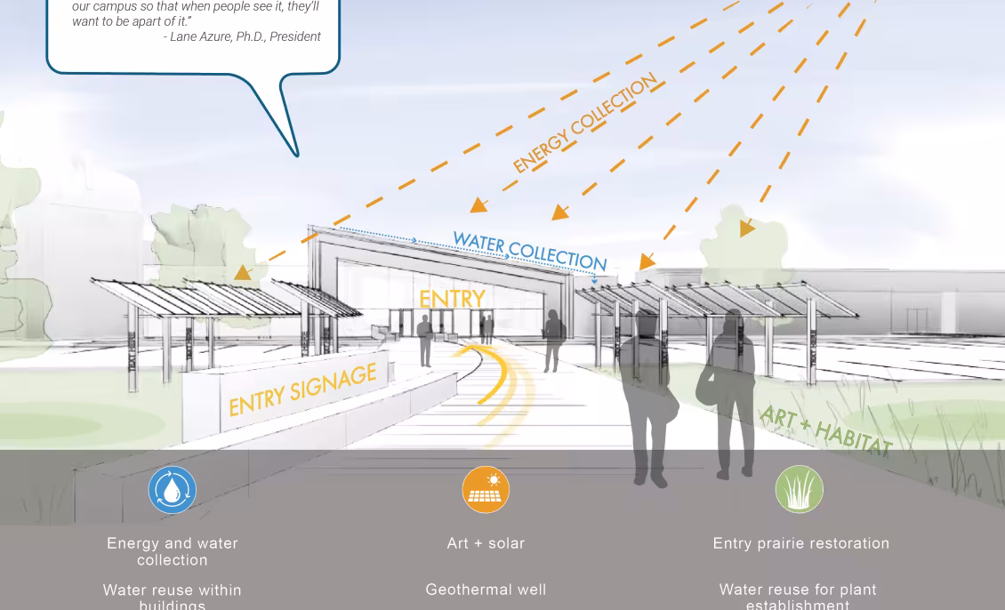 Can all of these strategies be brought together in one project? Cuningham thinks so. Our regenerative master plan for Sisseton Wahpeton College, a Native American college in South Dakota includes a path to reusing all existing buildings, net zero energy, net zero water, habitat/prairie restoration, and waste strategies. We expect to be doing more of this kind of work.