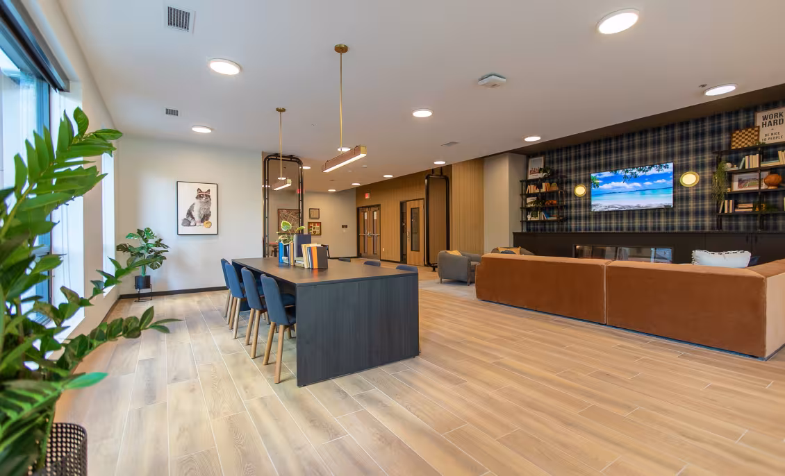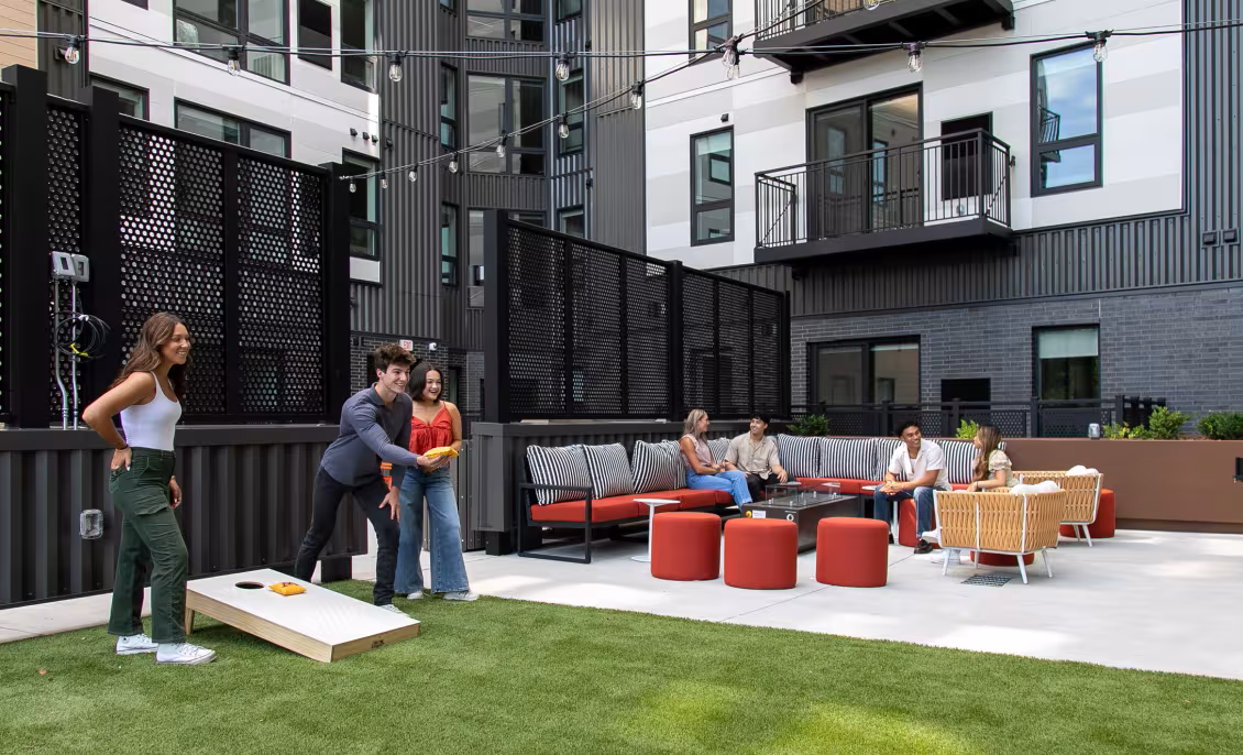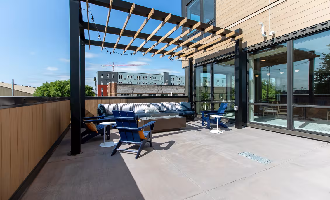 With warm wood elements and natural, organic materials, Fieldhouse Dinkytown’s distinctly Midwestern look sets itself apart from other urban-contemporary designs. A variety of shared spaces, including a pool, four-season outdoor spa and lounge, grilling stations, and artificial turf blend the line between indoors and out, giving residents of the building’s 274 fully-furnished units an authentic feeling of being “home.”