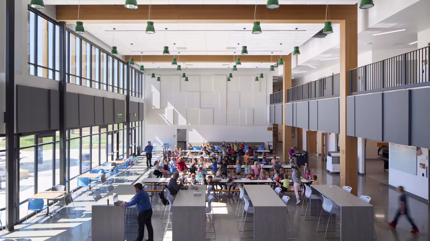 The new PK-12 campus in Hayden, Colorado includes a fully-renovated elementary school and secondary school addition featuring gyms, cafeteria commons, and career technical education facilities. Flexible learning spaces and teacher collaboration rooms are distributed throughout the building. The site includes a football stadium with full track, outdoor learning opportunities, recreation facilities for all ages of students, and parking. When completed, the new campus will transform the town of Hayden by creating new educational opportunities and shared facilities that act as a community hub.