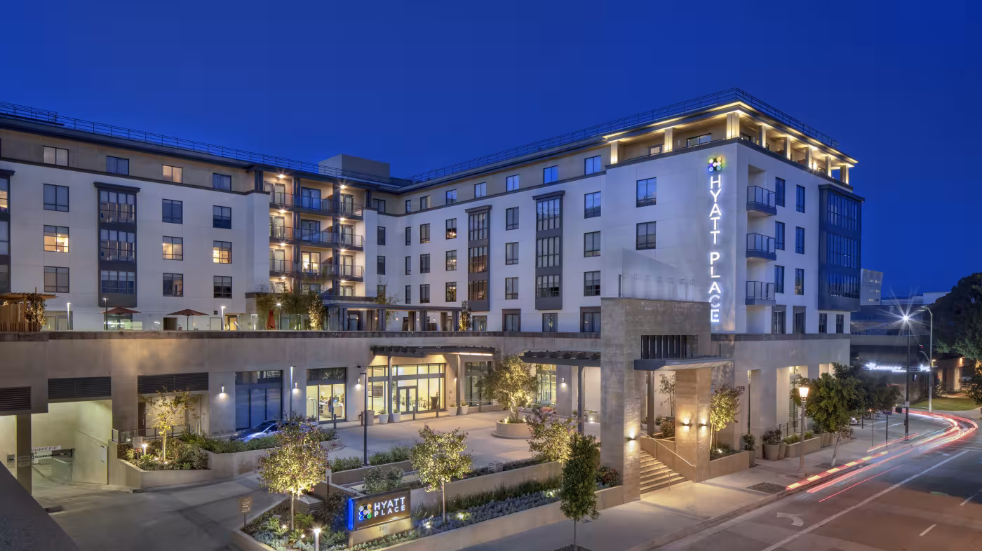 The Hyatt Place Hotel in Pasadena is an engaging and uplifting hotel that locals can be proud of and visitors will embrace. Located on the corner of two very walkable streets, the hotel is designed on an axis so that there are entries from three sides of the hotel. One entry is at the typical porte-cochere, one leads to local shops, and one welcomes the hotel guests to a greenbelt that will have new retail and commercial venues to explore on foot.