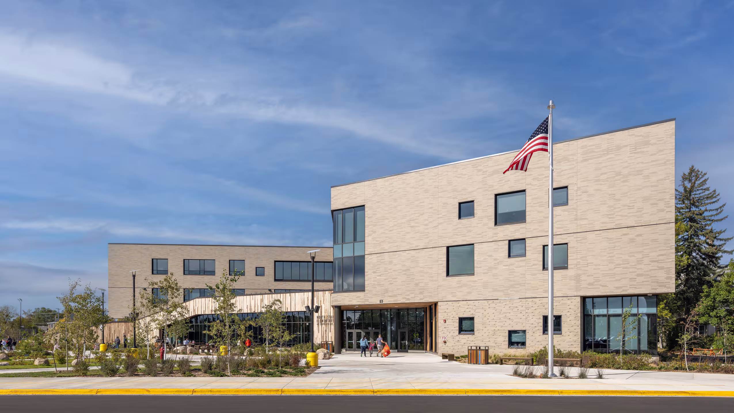 Sited on a large city block that formerly housed the district’s elementary and high school, North Star Elementary stands at three stories tall in order to minimize its building footprint and reclaim greenspace—a longstanding desire of the surrounding community. The building’s massing is carefully articulated to match the human scale of the downtown streetscape, creating a civic presence that is both welcoming and safe for students.