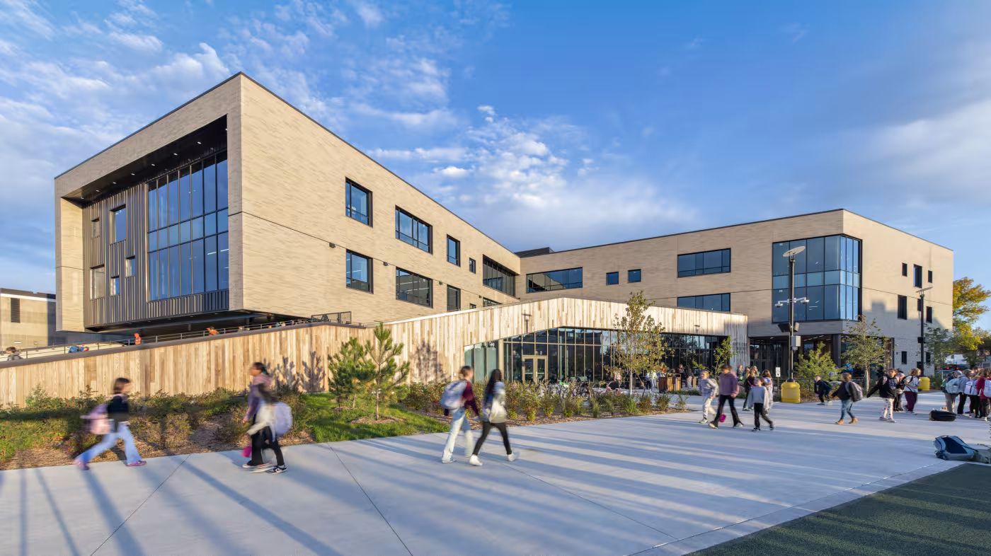 Designed to reflect Rock Ridge Public Schools’ vision for collaborative, student-centered learning, North Star Elementary infuses nature, play, and flexibility into the learning experience. Contrary to the wooded setting of Rock Ridge Public Schools’ other two new facilities, Laurentian Elementary School and Rock Ridge High School, North Star Elementary reflects and integrates into the more urban environment of downtown Virginia, Minnesota.