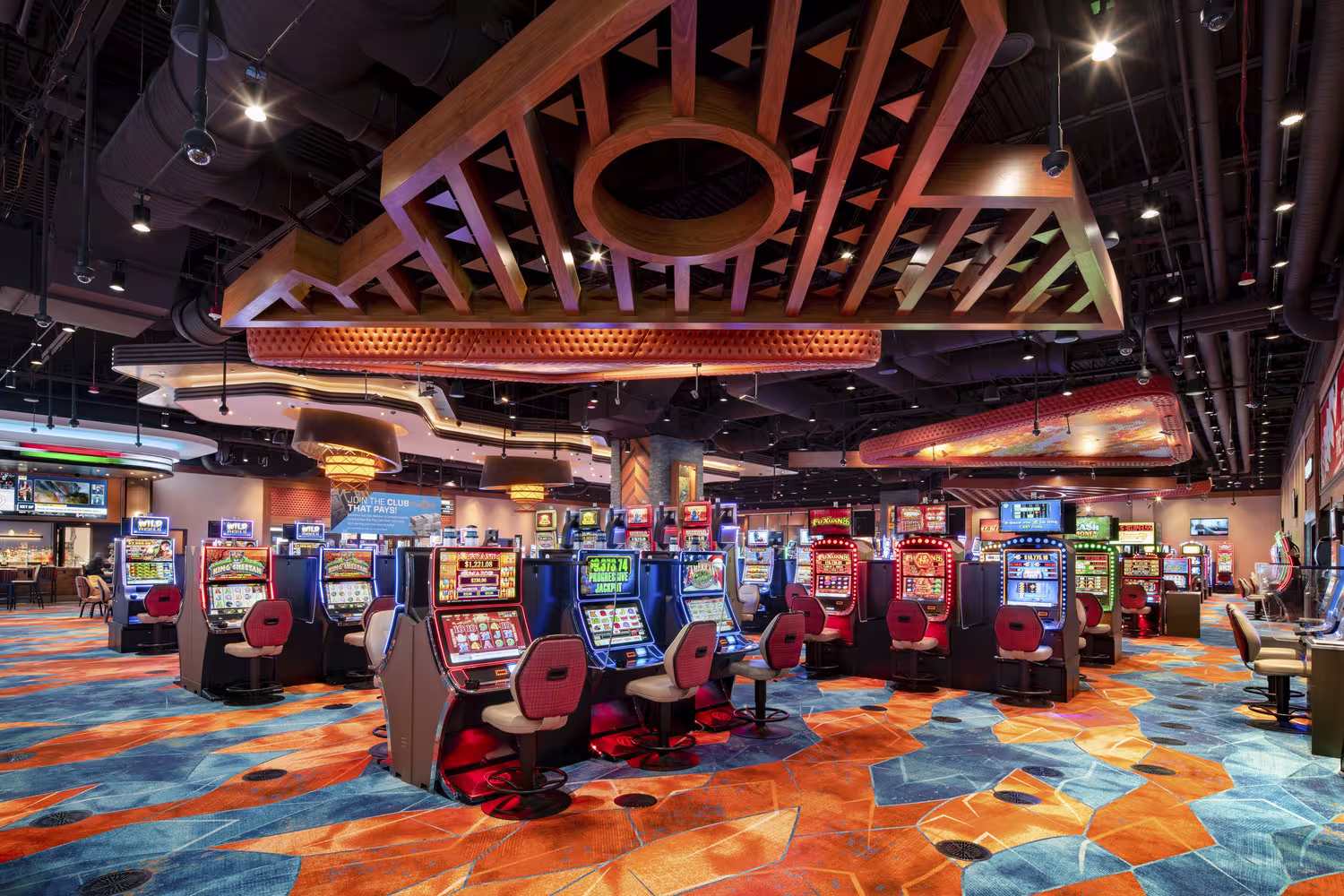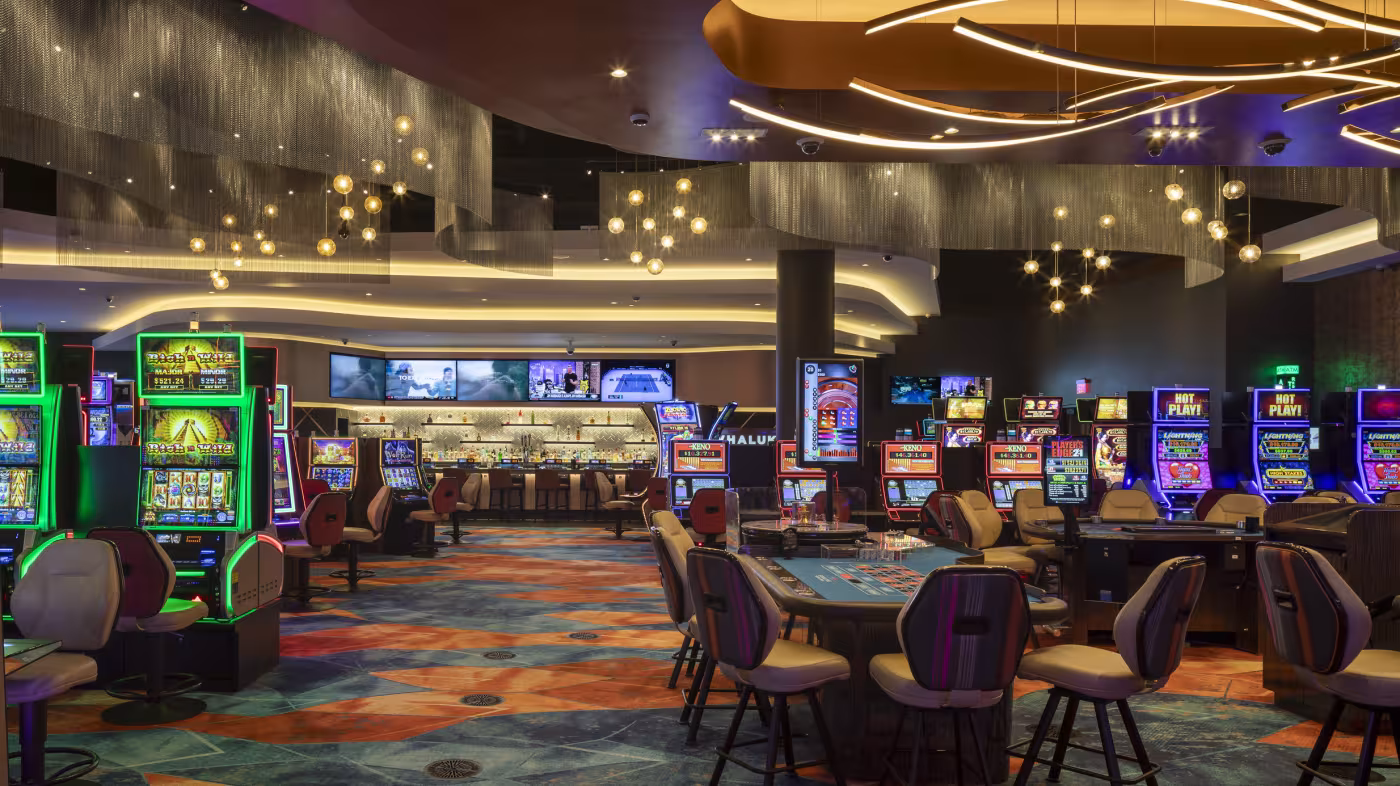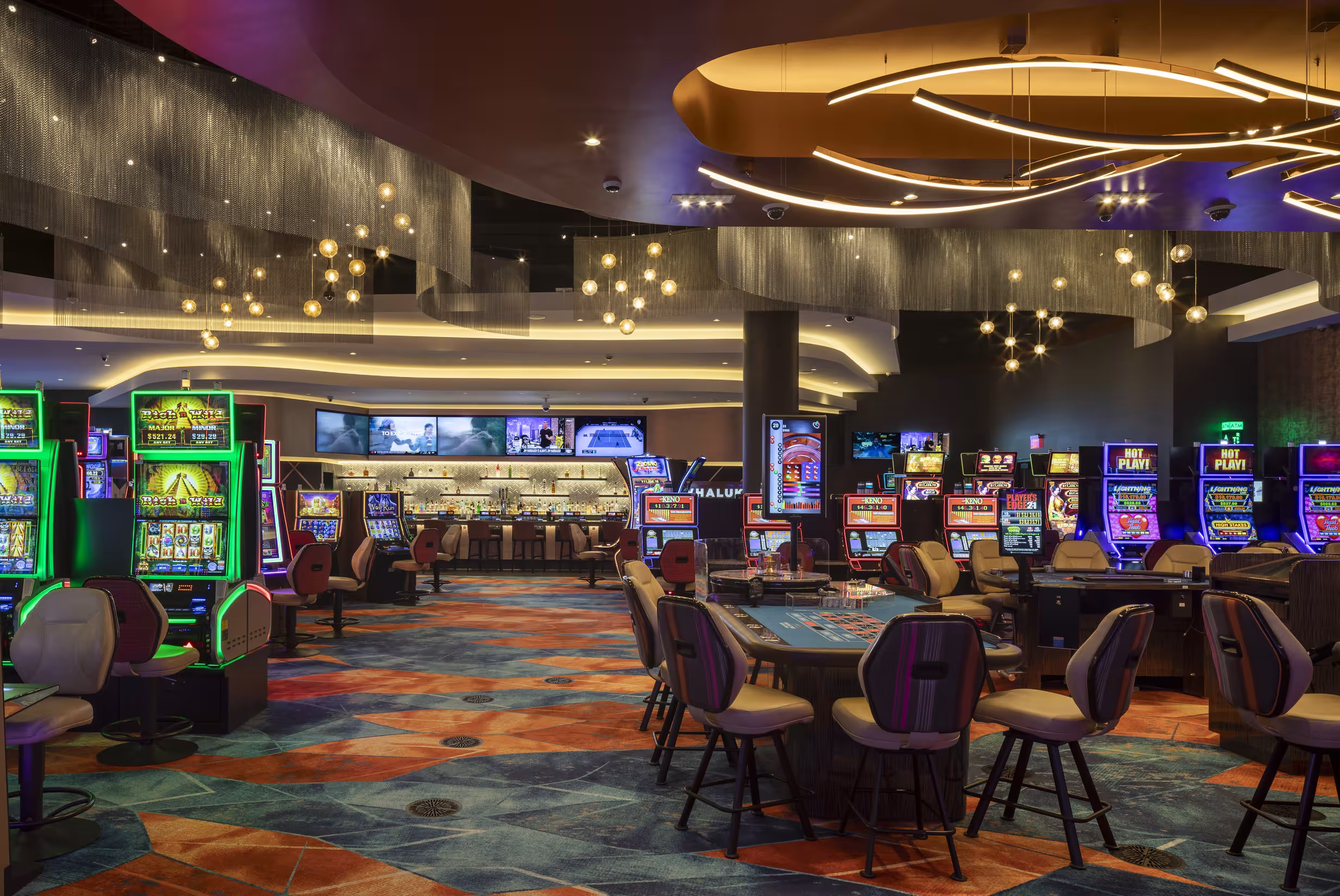 The new Spokane Tribe Sportsbook and Casino expansion doubles the existing casino’s gaming floor and creates a visually dynamic space where games can be observed from all angles of the casino.