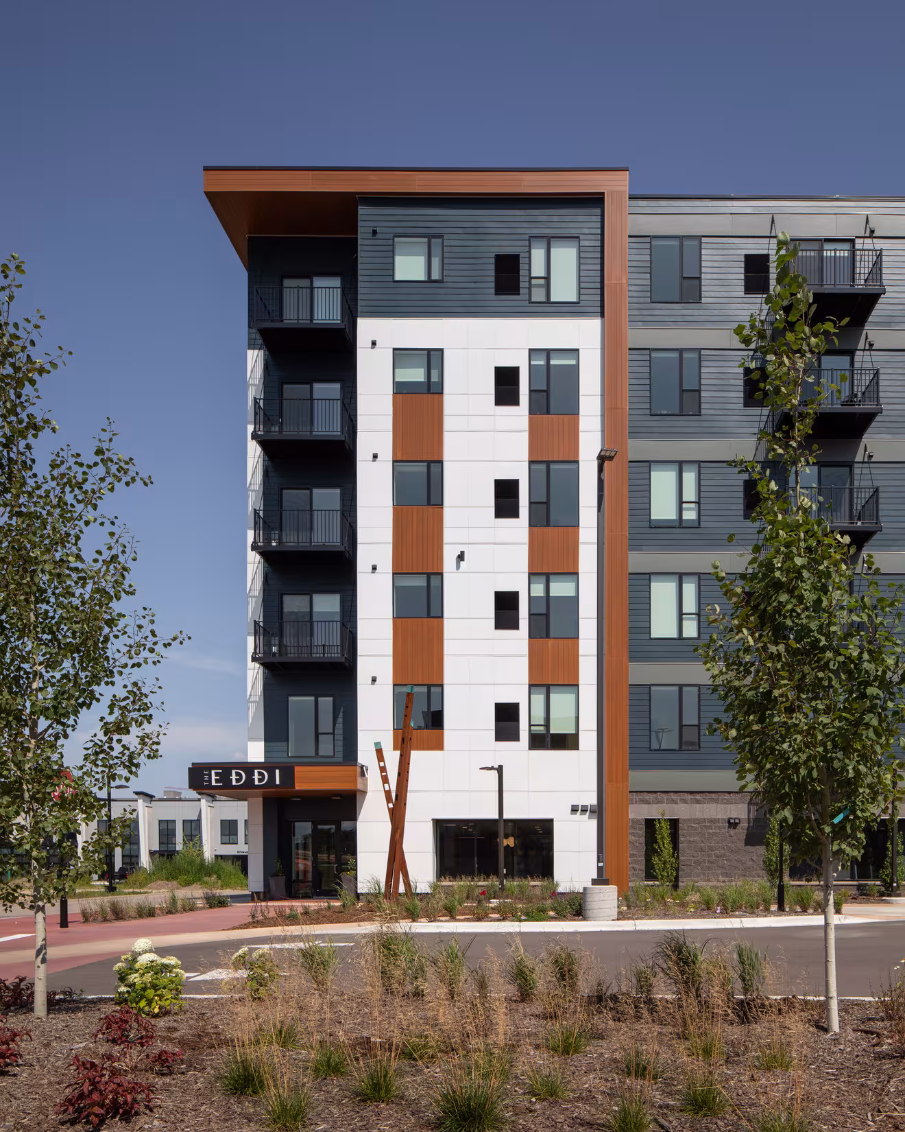 The Eddi Apartments, developed in collaboration with RISE Modular and Solomon Real Estate Group, is a 202-unit rental community, featuring both market-rate and affordable units, that sets a new standard for commercial modular projects in Minnesota. As the largest modular multi-family development in the state and one of the largest commercial volumetric wood-frame modular projects in the United States, The Eddi is comprised of 205 modules within a 244,000-square-foot, six-story building.
