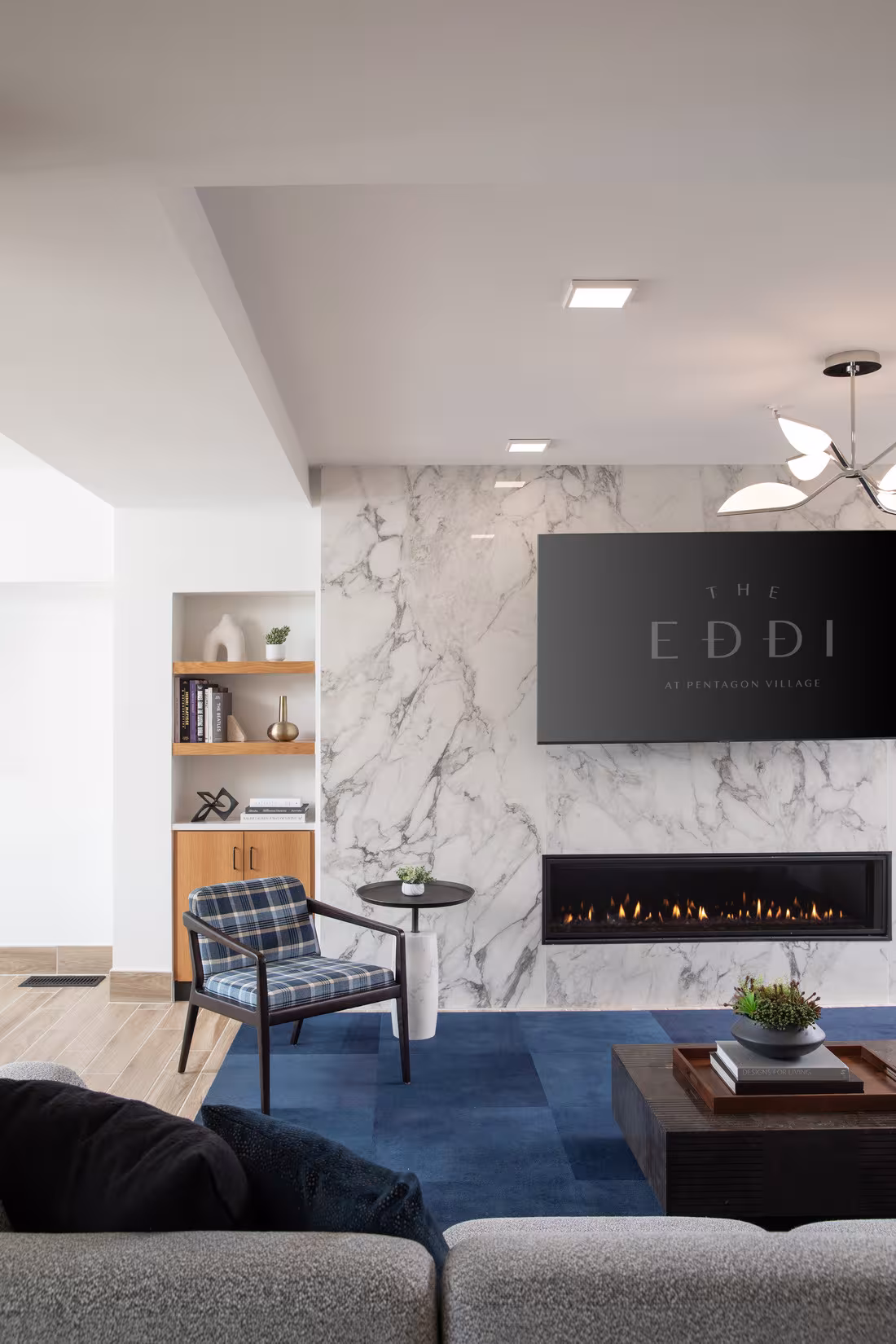 Part of the larger, master-planned Pentagon Village, The Eddi is the beating heart of this mixed-use redevelopment transforming an under-utilized office park into a dynamic neighborhood. Offering a diverse range of high-end amenities, including co-working spaces, a clubroom, a fitness center, a yoga studio, an outdoor pool deck, and a dog run, the Eddi creates an inviting and connected living experience that thoughtfully blends comfort, community, and vibrant design.