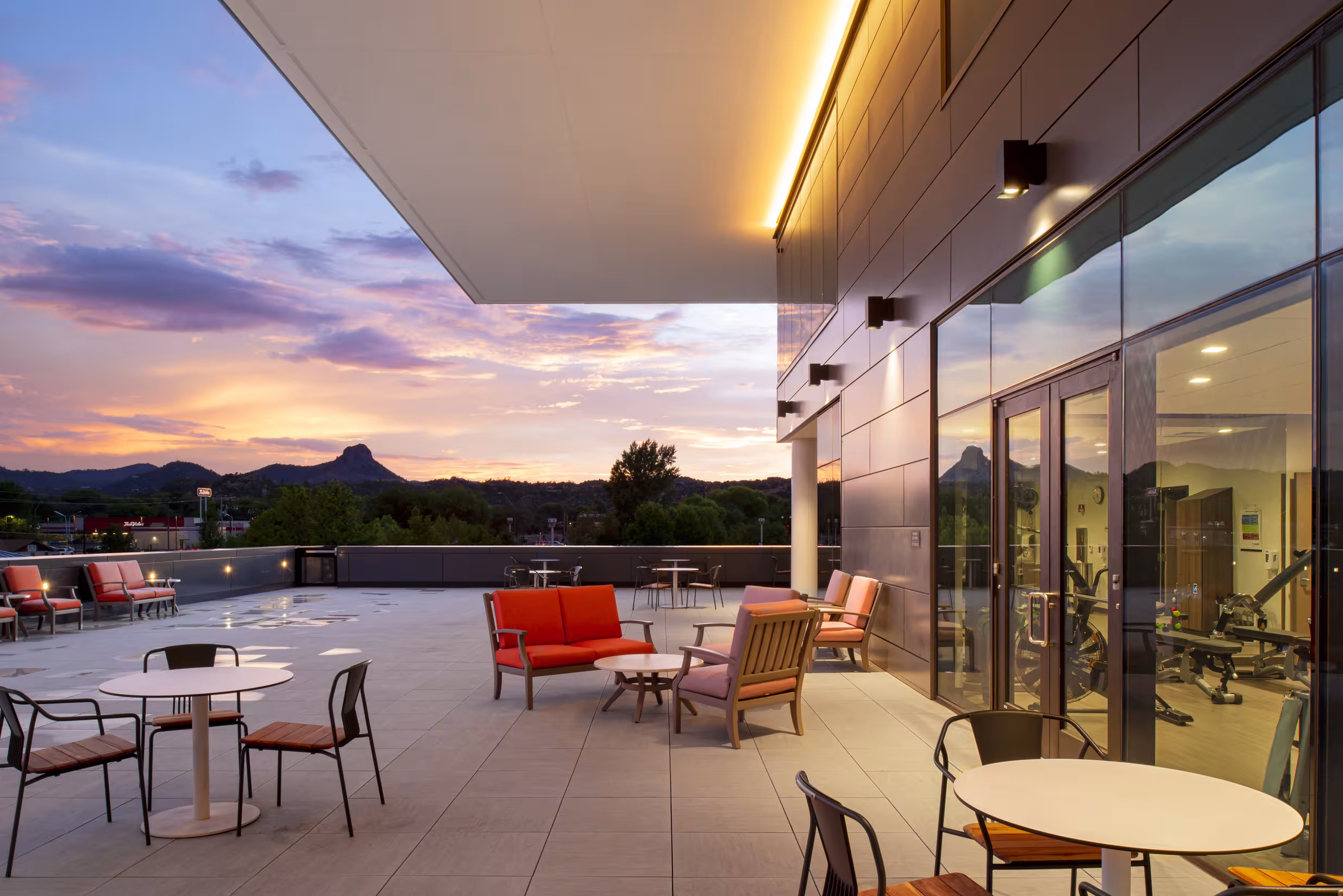 The design creates flexible clinic modules which can be adapted over time to meet the needs of the health system. A major goal of the project was to create a community asset that could be shared with the residents of Prescott and be a beacon of health and wellness. Interior and exterior spaces were designed with this in mind allowing various levels of access throughout the day for different activities. As part of this goal, the adjacent parking structure aligns with the floors in the Outpatient Services Building to avoid stairs and ramps for the elderly population who will frequent the building.